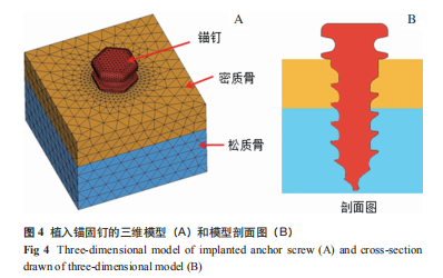 1.2.3??材料參數(shù)?? 2種醫(yī)用錨固釘材料均包括90%鈦、5.5%鋁、3.5%釩、1%碳、1%鐵、1%氮以及1%氧(表1)。