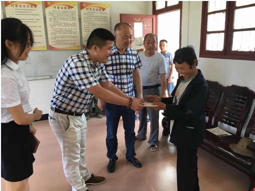 上午,慰問(wèn)組一行人驅(qū)車穿過(guò)崎嶇山路到達(dá)茶庵鎮(zhèn)中心坪村。通過(guò)村委會(huì)了解到該村目前存在的實(shí)際困難,及重點(diǎn)扶貧對(duì)象。神龍集團(tuán)董事長(zhǎng)朱濤同志,在聽(tīng)取村委會(huì)相關(guān)工作人員介紹后,當(dāng)即決定對(duì)8戶困難村民(孔秋生、周歡保、孔金生、李世光、李世松、李煥新、李武祥、李唐釗)進(jìn)行捐資,并深入農(nóng)戶家中實(shí)地走訪,與貧困戶親切交談,詳細(xì)詢問(wèn)了解他們的身體健康狀況、家庭生活等情況,并承諾企業(yè)愿為困難群眾提供就業(yè)機(jī)會(huì),希望他們樂(lè)觀面對(duì)生活,并鼓勵(lì)他們堅(jiān)定脫貧致富信心,努力提升生活品質(zhì),爭(zhēng)取早日同步小康。